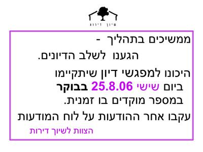 מודעה ראשונה על מפגשי דיון 7.8.06