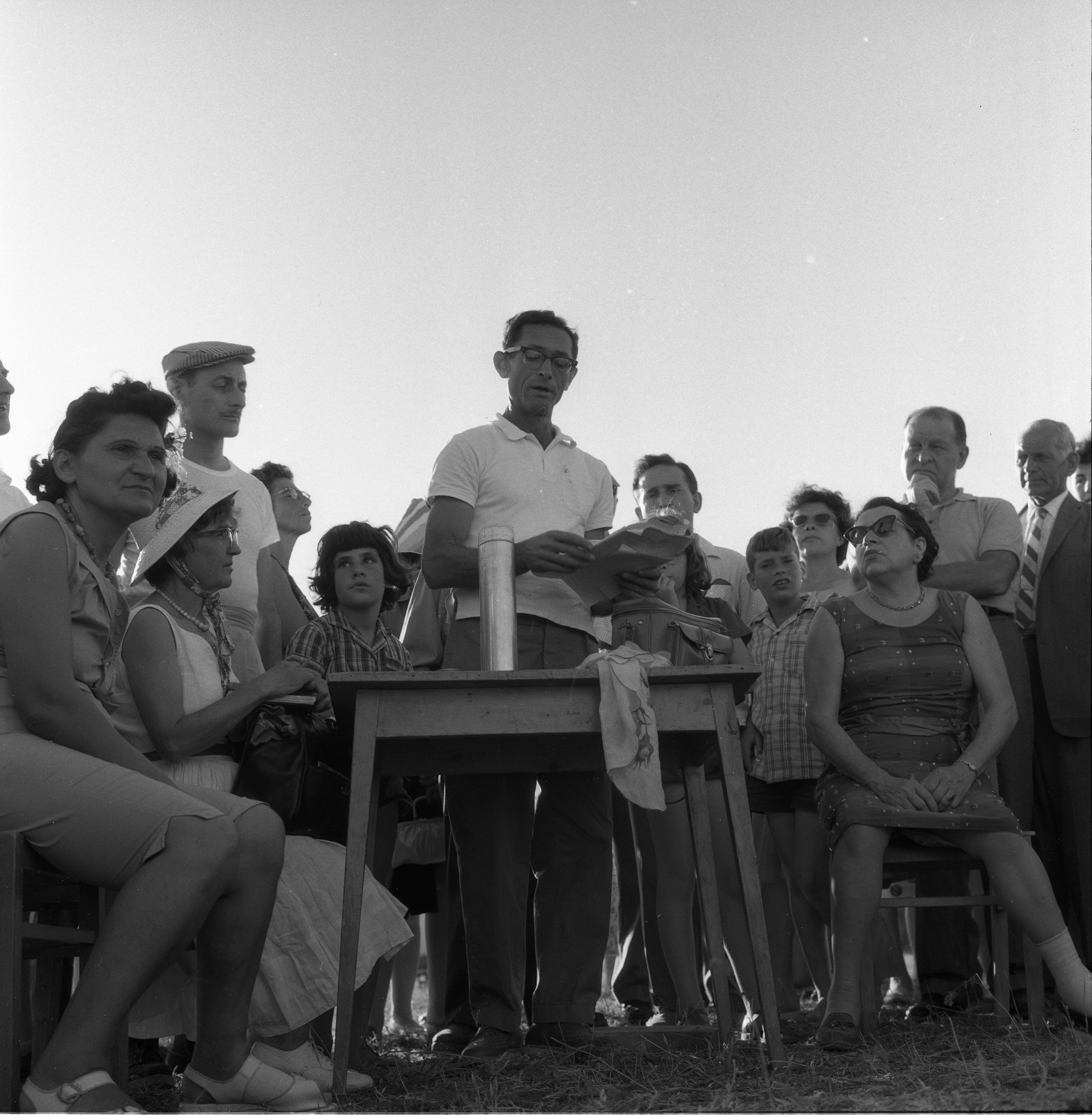 הנחת אבן-פינה לבנין ספרית הקיבוץ והמוסד החינוכי ב