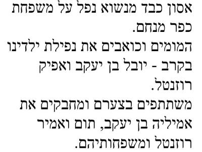 אסון כבד מנשוא נפל על משפחת כפר מנחם.jpg